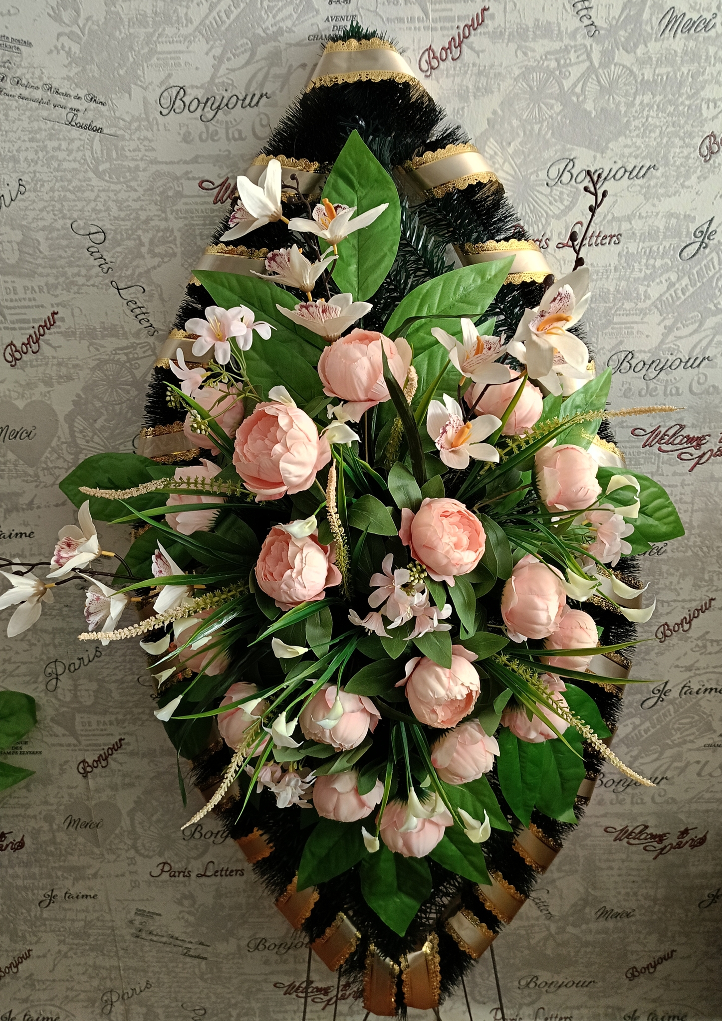 Венок 140 см пионы и орхидеи пастельные