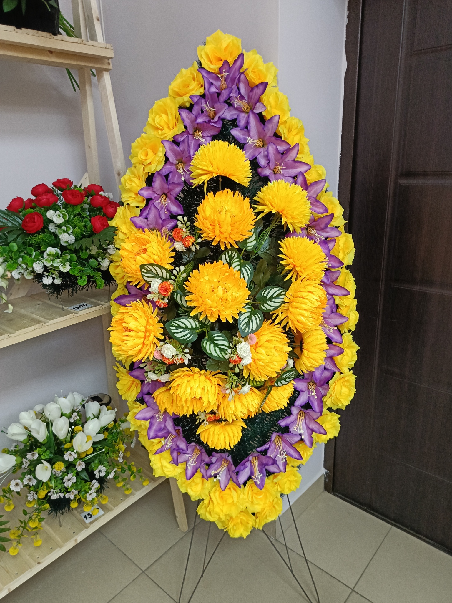 Венок 140 см с жёлтыми астрами